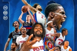 赛后,活塞发布10连胜海报,斯图尔特位居C位,和康宁汉姆、杜伦一起占据的版面的中央。