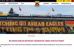 体育资讯11月29日讯 荷甲球队前进之鹰俱乐部官方对与斯图加特比赛中的不当行为表示歉意。