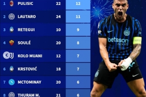 体育资讯12月16日讯 德转统计了2025年意甲球员的客场进球榜单,普利西奇位列第一。