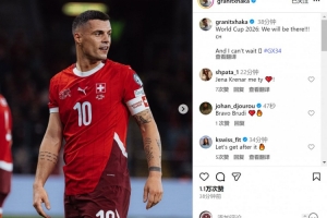 扎卡社媒庆祝瑞士队出线:世界杯我们来了,我已迫不及待!